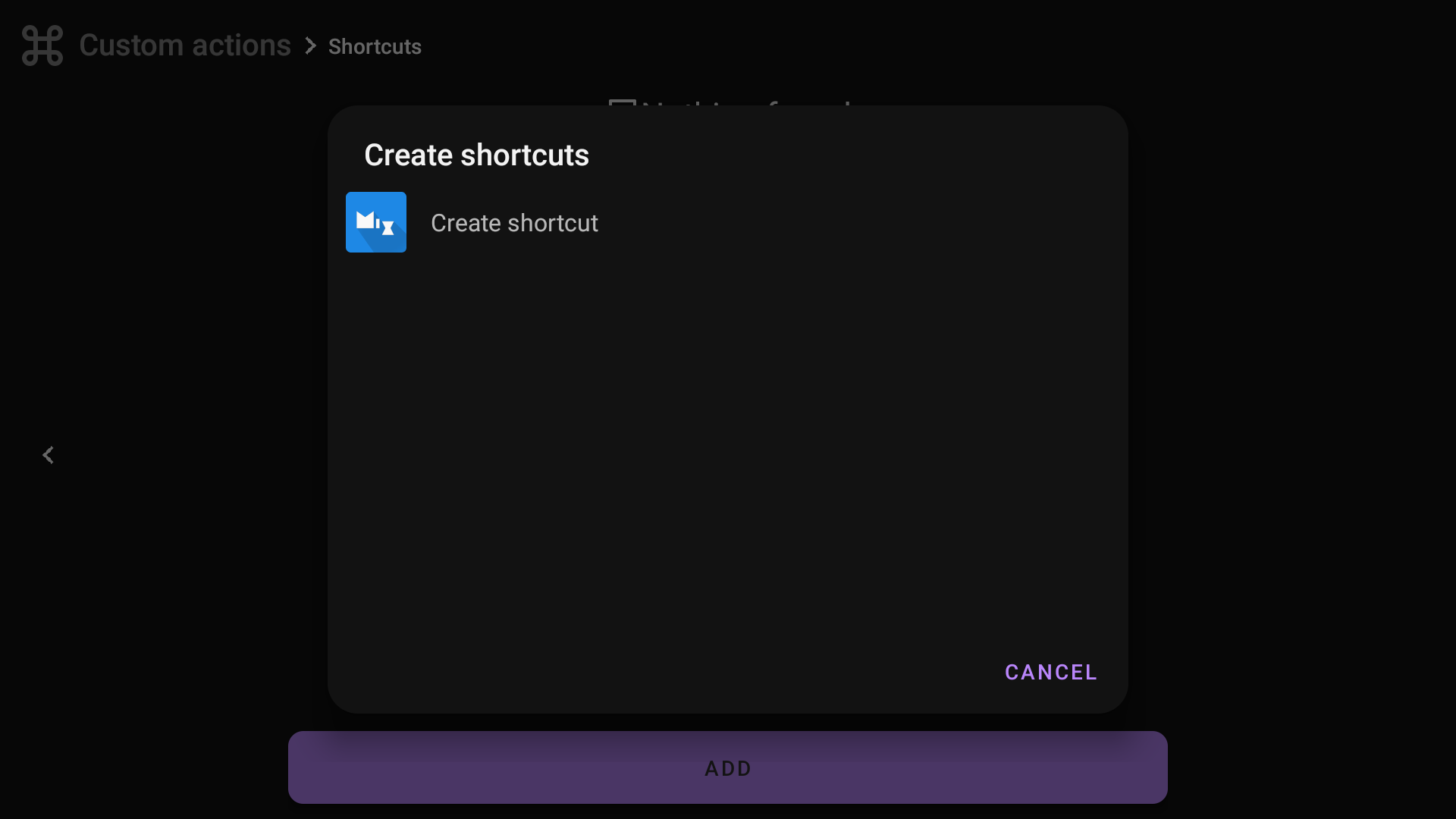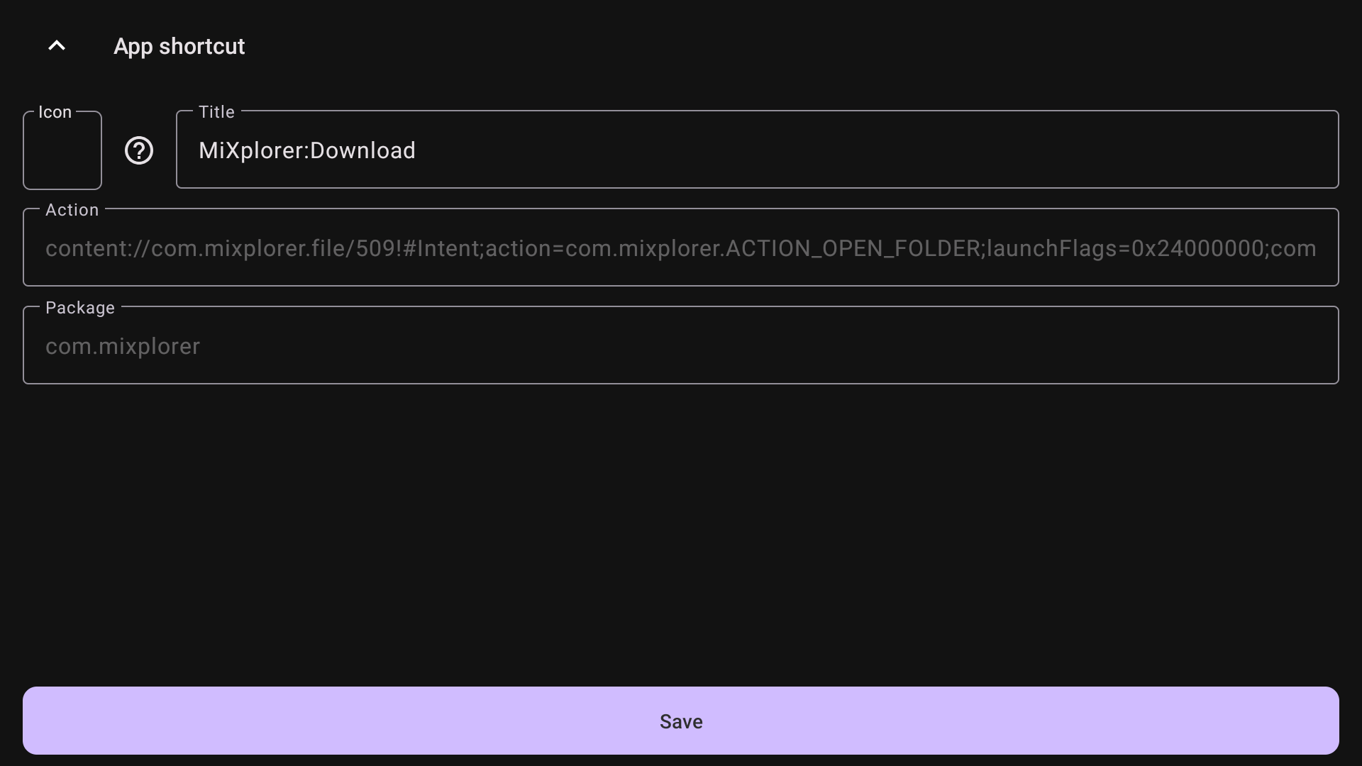 Here you can create shortcuts for apps that support them. This is a quick way to run an action inside another app. I currently have only one app installed that supports shortcuts, MiXplorer, so in this example I will create a shortcut to open the Downloads folder.