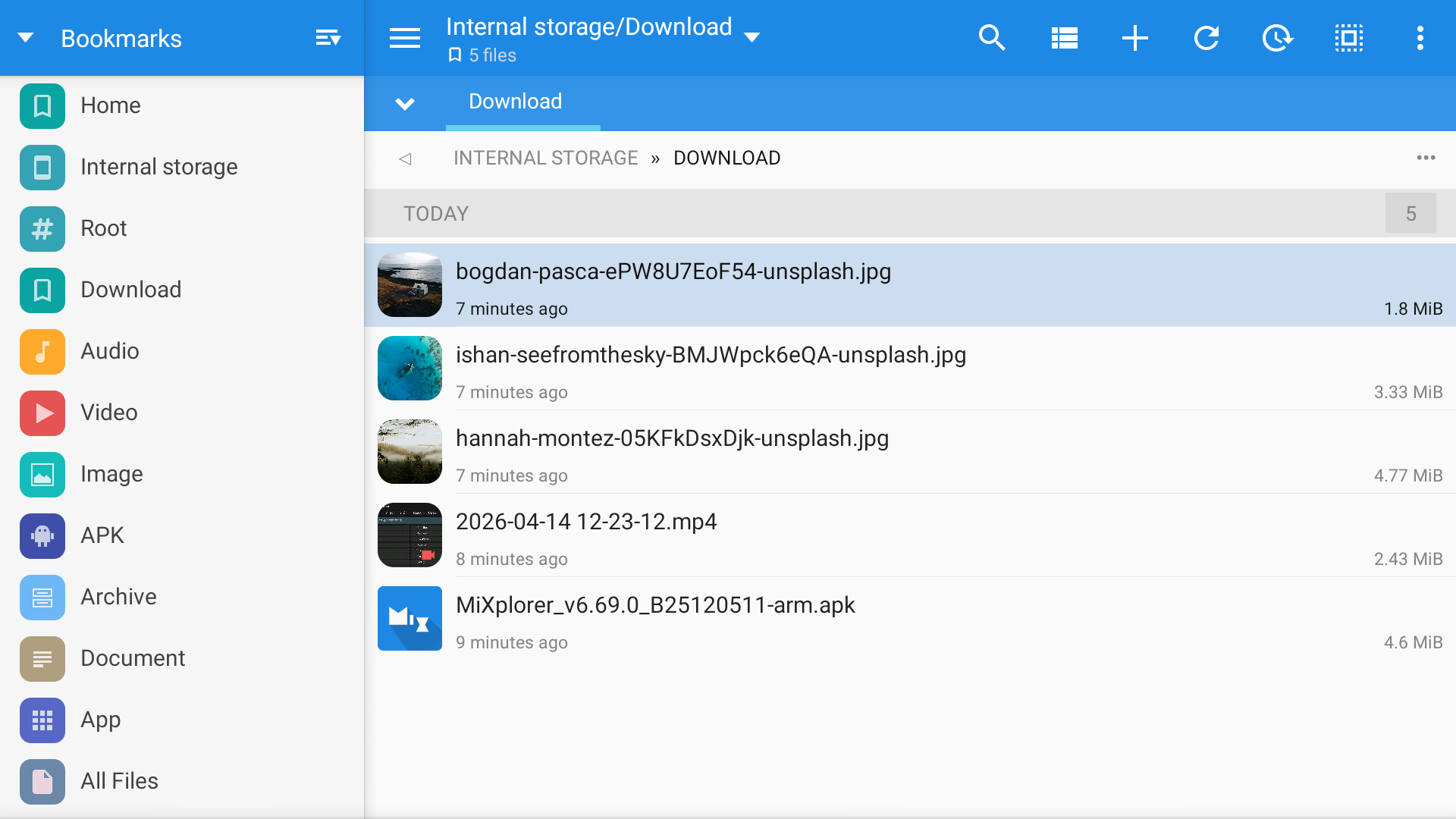 If you press this button, it will open MiXplorer in the Downloads folder.