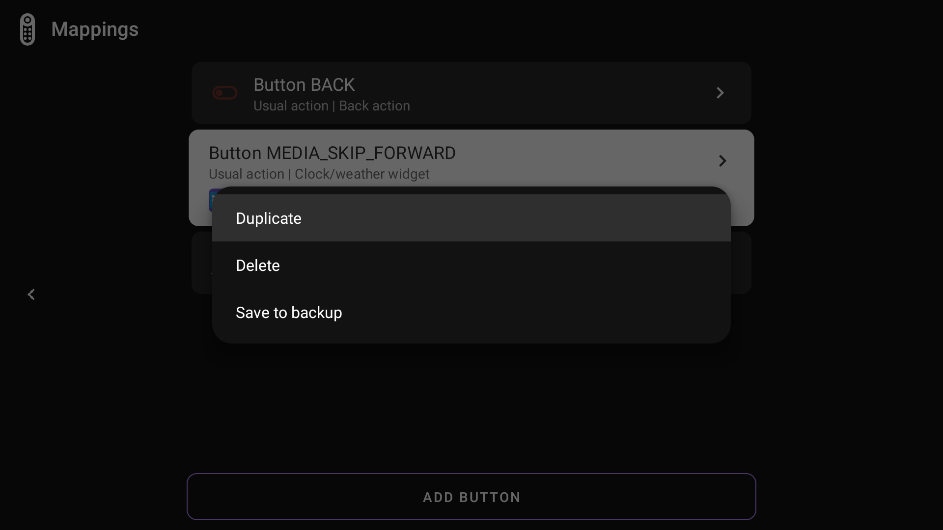 Long-press a mapping for quick options: duplicate it, delete it, or save it to a backup.