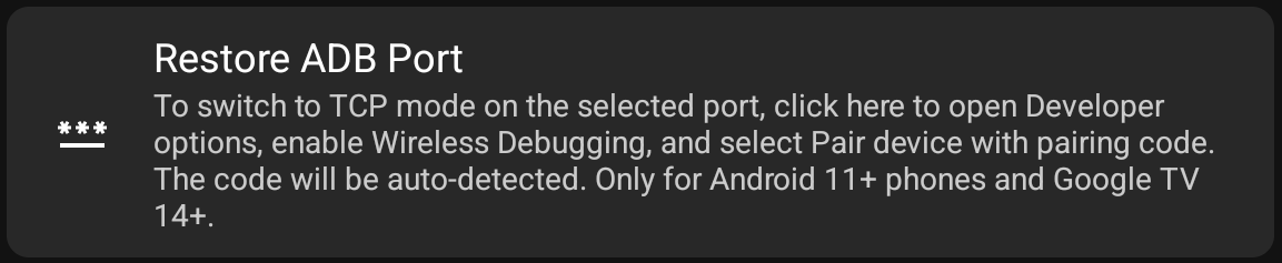 Here you can restart the ADB service if you have any trouble with ADB features.